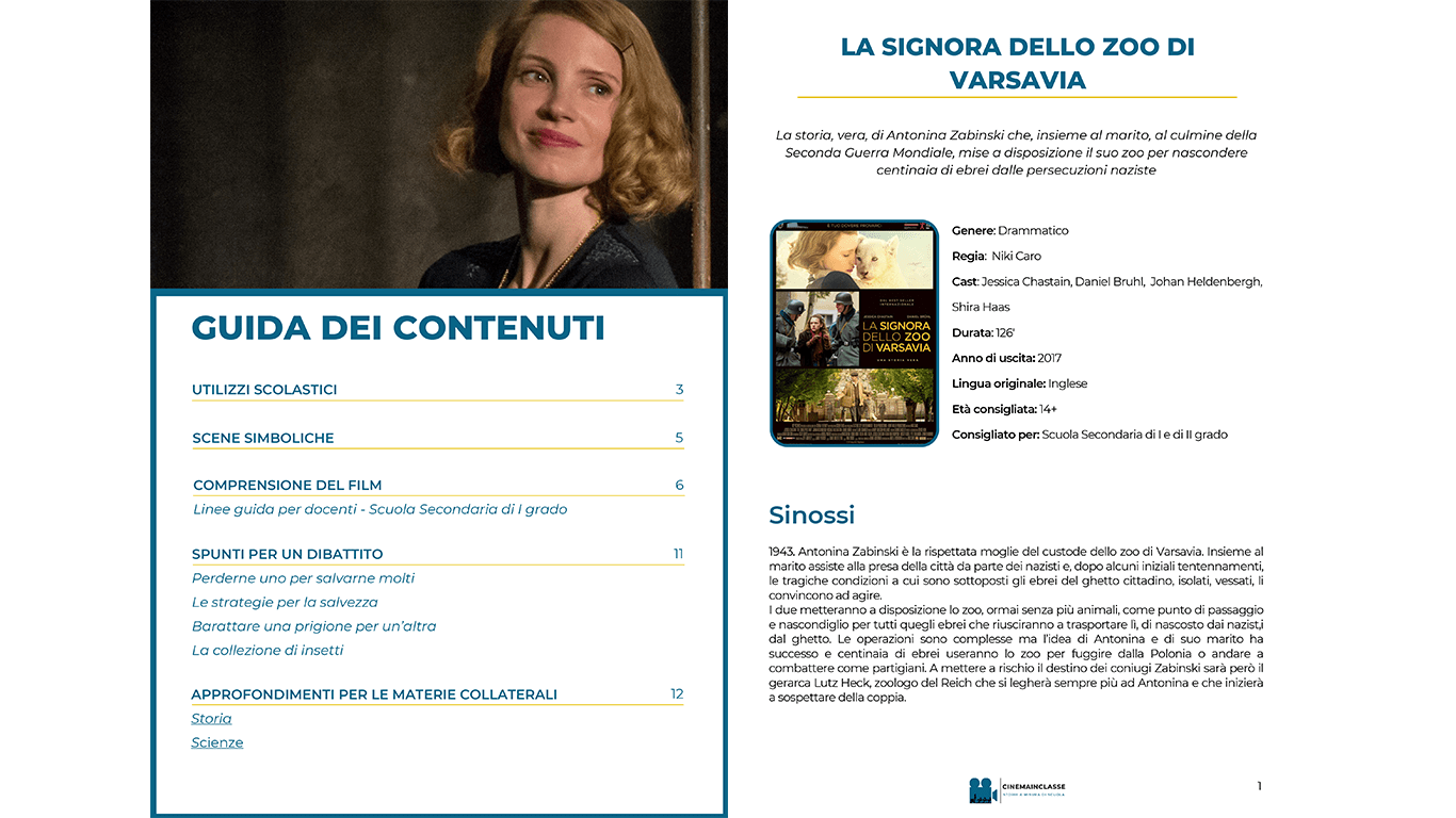 I materiali offrono al docente gli strumenti necessari per organizzare al meglio la visione, con attività diversificate in base al grado scolastico, come esercitazioni, tracce per temi e spunti di dibattito disponibili anche in lingua.