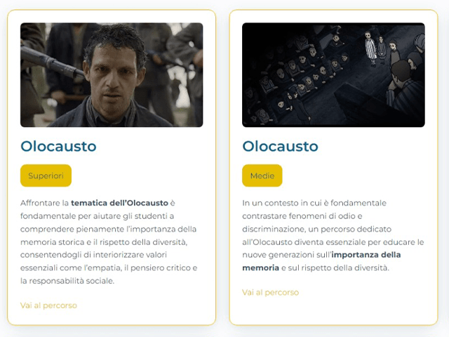 I percorsi tematici consentono di affrontare il tema dell’Olocausto attraverso la visione di più film e attività strutturate. Sono suddivisi in 3 fasi: