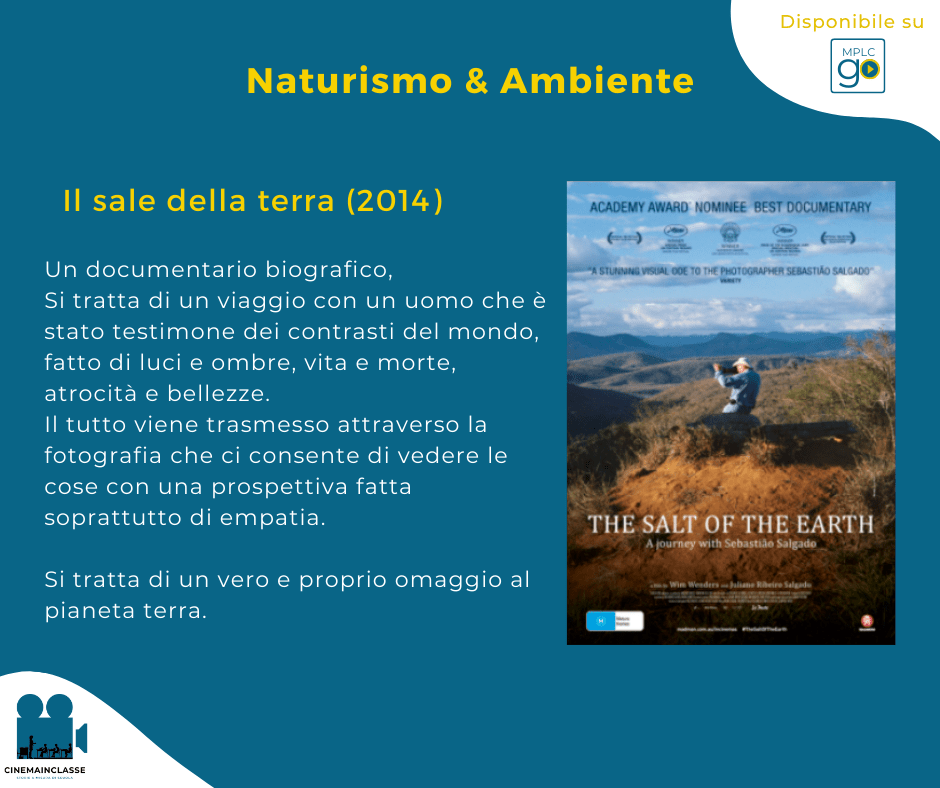 🎬 Ti suggeriamo la visione con la classe del film/documentario “Il sale della terra”, che rappresenta un vero e proprio omaggio al nostro pianeta.